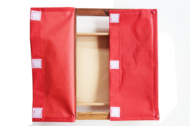This one is a traditional Montessori dressing frame, which I got on sale. It’s just a frame with fabric and velcro. I put it out but my son’s not minding it as much.