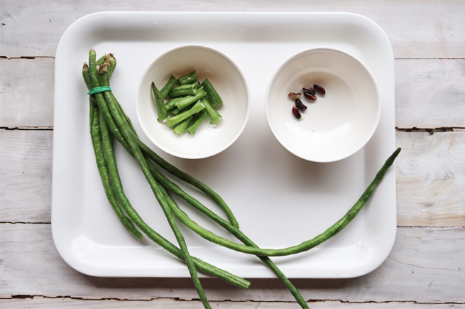 Another way you can cut without using knives is to use your bare hands! This is possible with some kinds of vegetables, such as sitaw (string beans), which we always have at home. A plus here is you can also take out the seeds!
