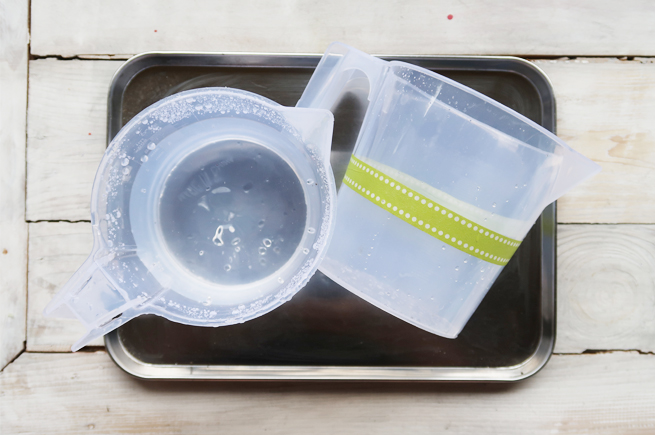 Once your infant/ toddler is already comfortable with transferring solids, you can also introduce transferring liquids. You may start with containers that are large enough for liquids to easily fit without much spills (but of course, prepare for spills – they are essential in the process of learning). Once your child can do it with ease, you can add a control of error. Say, you need 1/2 cup, you can put a washi tape (can easily be removed later on) on where your child should stop since s/he cannot count and read numbers at this stage yet. Then you can move on to smaller containers, or measuring cups.