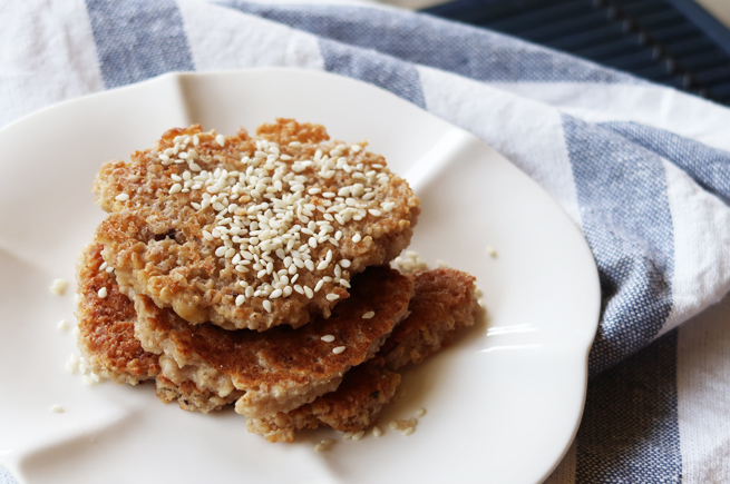 * Sprinkle sesame seeds on the pancakes.