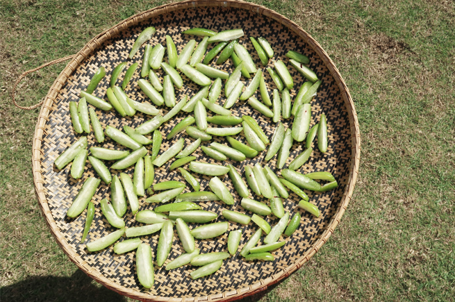 After washing, we cut it in half and dry it under the sun for a few days! When you cut it, you’ll see some parts turn red. Quite cool. I think it can be used as natural dye. Some also make a shake out of this. I have to figure out how to lessen the sourness without putting too much sugar. 😛
